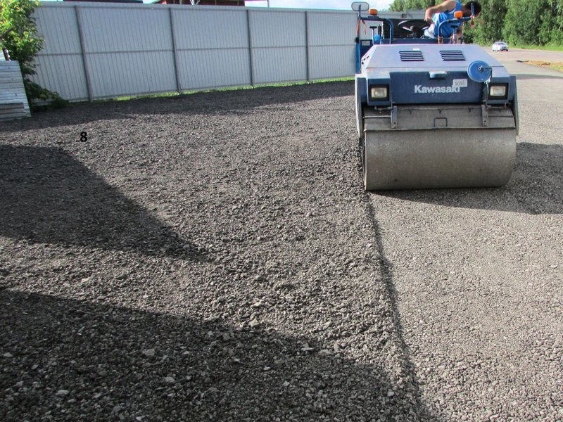 Этим материалом выполняется устройство подъездных, а также загородных и второстепенных по важности дорог для автотранспорта. При укладке асфальтобетонной крошки выполняются следующие работы: снятие грунта, подготовка основания, укладка геотекстиля, работа по устройству покрытия, уплотнение. После устройства покрытия им сразу можно пользоваться.