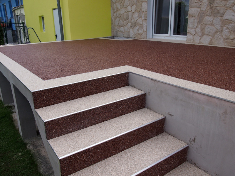 Каменные ковры практичны и обладают потрясающими эстетичными свойствами. Вы удивитесь, как обычный бетон может преобразиться. Данное покрытие прочно, долговечно, ремонтопригодно и не боится ультрафиолетовых лучей. Поверхность выдерживает любые перепады температур.Ухаживать за покрытием не сложно.